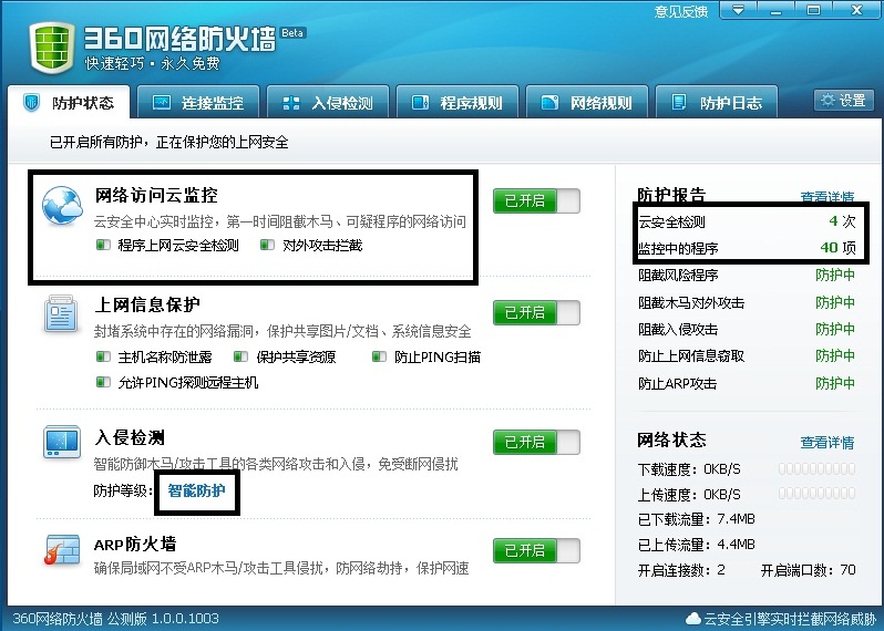 360的策略就是 系统 瞬时 收到大量的包,有可能消耗大量的资源时,拦截并报警!!!