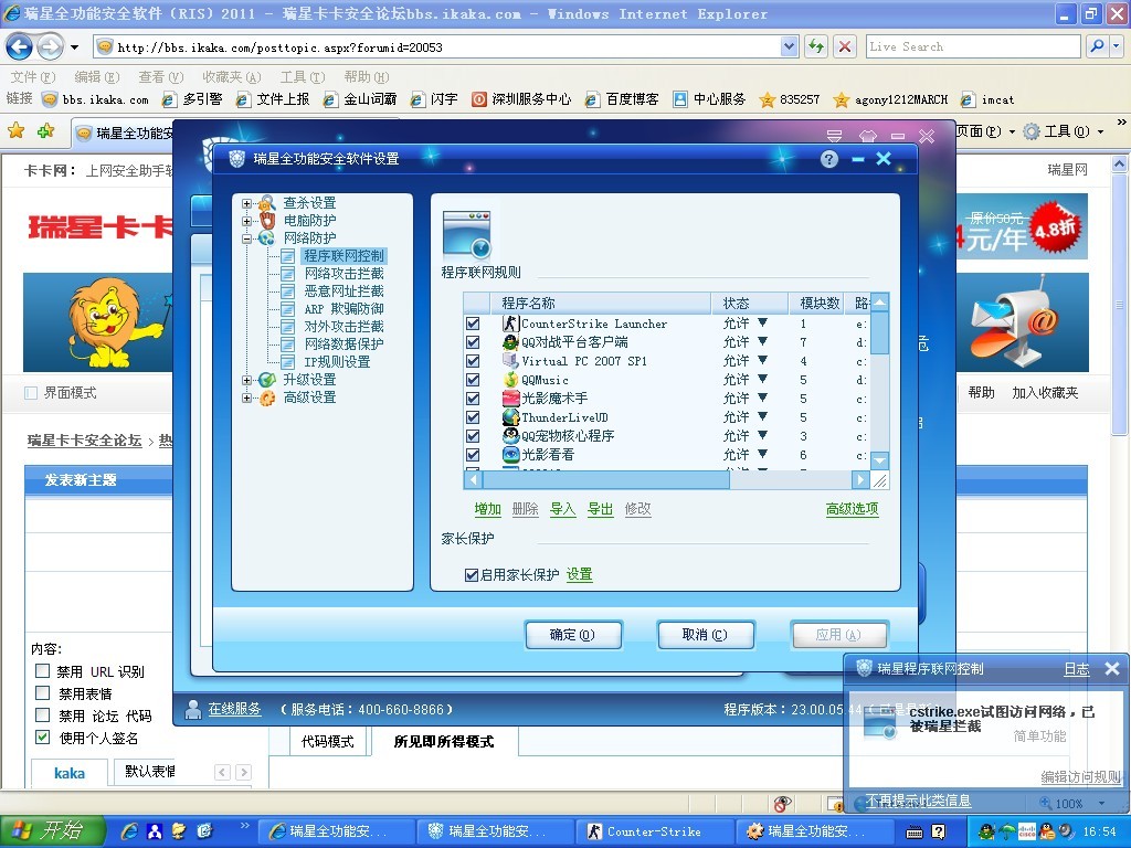 刚刚升级了RIS2011之后,[05.44]发现CS被拦截