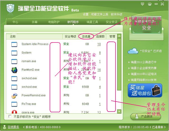 强烈希望瑞星2011“联网程序”界面功能改进!