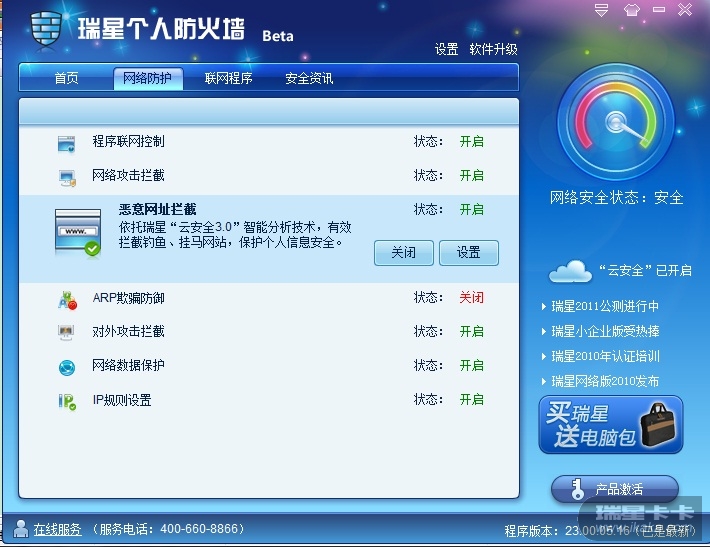 希望瑞星工程师关注下瑞星防火墙2011和QQ2010的冲突,谢谢。。。