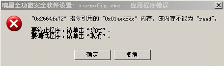 浏览器及版本:世界之窗3.2.0.7 瑞星软件版本:23.00.05.61 问题现象:升级后,查看了下设置,更改了邮件监控确定后报错,图1;因打开监控不能浏览网页,所以一直是关闭的,刚才打开监控试了下,报错,图2,点击数次开启监控,才全部开启。图1