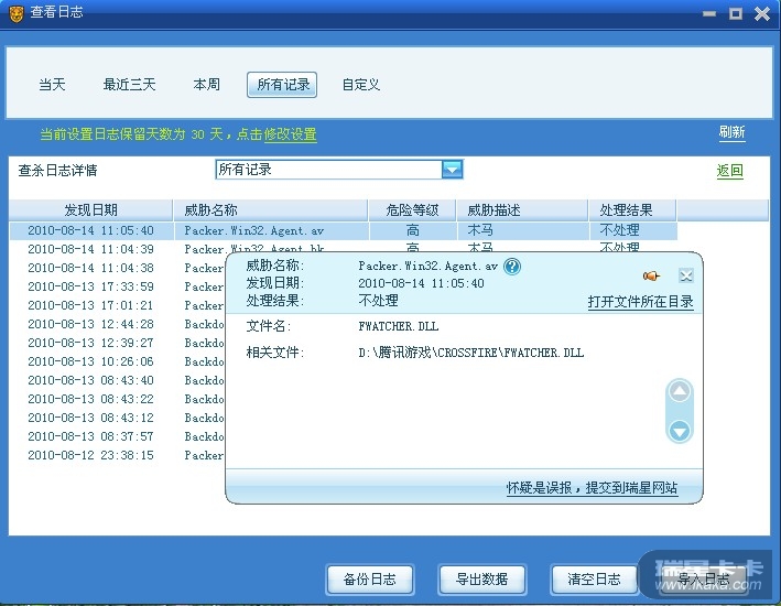 我在QQ官方网站下的穿越火线运行时查出病毒,处理后穿越火线游戏就不能运行。(上报了瑞星,可是没有回复。)