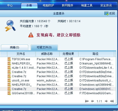 [误报样本] 瑞星全功能安全软件(RIS)2011喜欢你疯狂(1)。。。呵呵