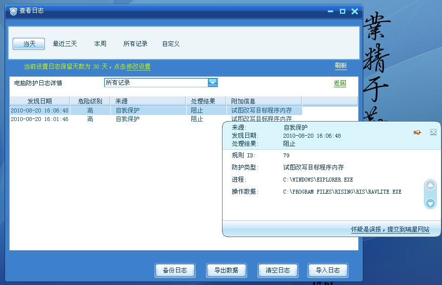 RIS测试反馈帖17.启动后的第一次右键扫描一定会触发对ravlite的自保(日志在附件)