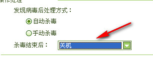 已经确认,在各种查杀方式中选择自动杀毒后可对杀毒结束后的操作进行设置。
