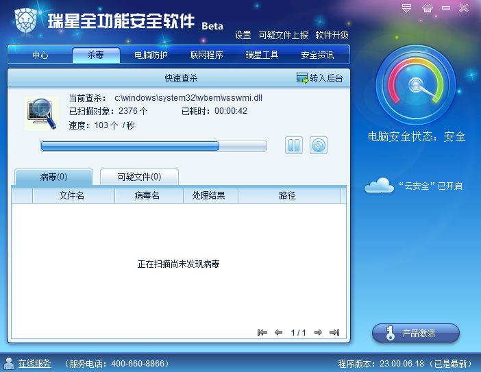 问题现象: 执行快速扫描时,扫描到某一个进度时进度条一直就不动,直到全部扫描完成!
