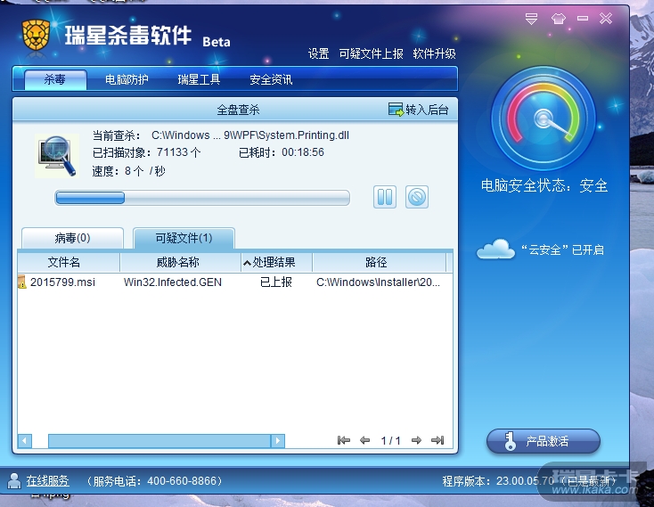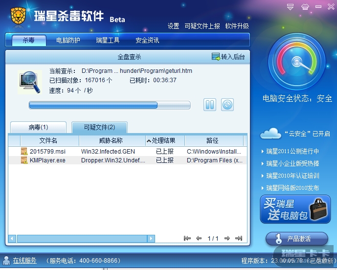 请跟帖上传那两个可疑文件,另请提供瑞星软件版本信息。