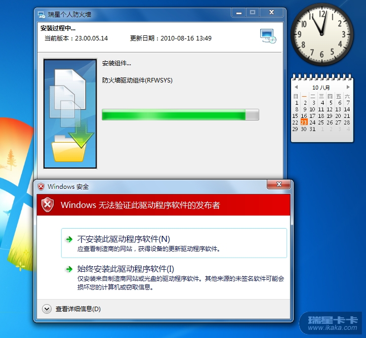 测试系统:win7旗舰版,64位,IE8,防火墙在安装时不知道怎么了,被win7认为是非法安装程序!!要求选择是否继续安装,总共跳出两次,这个是需要解决的,以前别的版本是没有这个现象的,杀软也没有这个现象!见图