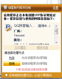 以前用的挺爽,一个提示没有,开什么出什么。智能管理自动放行。可是现在 更新后 基本什么程序都要来询问一遍 开Windows Media Player,询问是否允许..迅雷,询问是否允许,QQ拼音,也来询问一遍。。另外 以前2010版本双击秒数能暂停,现在却不能了 考虑的时间久了点就自动拒绝了。。希望把双击暂停读秒的功能加回去。另外希望云安全系统能够更全面的收集软件, 在智能模式下,像这些可信程序,直接就放行了吧 不要再询问用户。