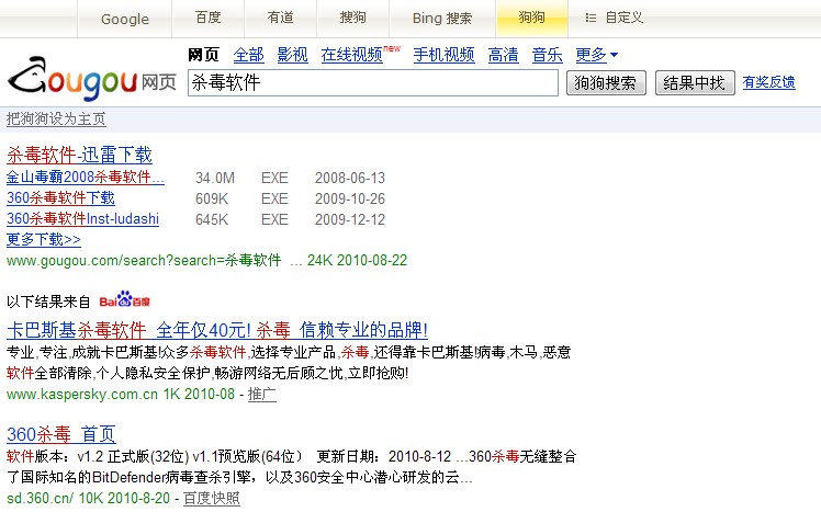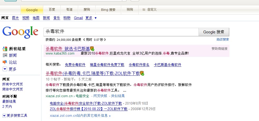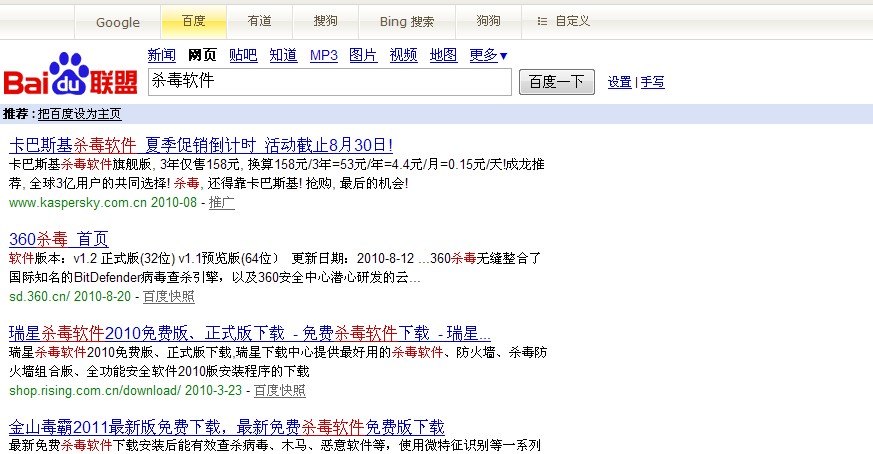 启用瑞星的“对搜索引擎搜索结果风险分析”功能,对百度、谷歌、有道、搜狗、Bing、狗狗6款搜索引擎进行测试,发现只有谷歌和Bing两款国外搜索引擎支持这一功能,而国内的均不支持。希望瑞星能够更多的支持国内的搜索引擎,毕竟这些才是国人经常使用的。