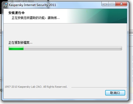 因为卡巴斯基全功能安全软件2011还没有官方的简体中文版,我用台湾繁体中文版来测试。