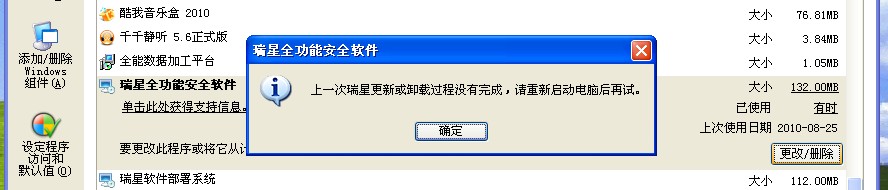 瑞星瑞星2011BUG-安装未成功-无法执行卸载-IE不加载java脚本