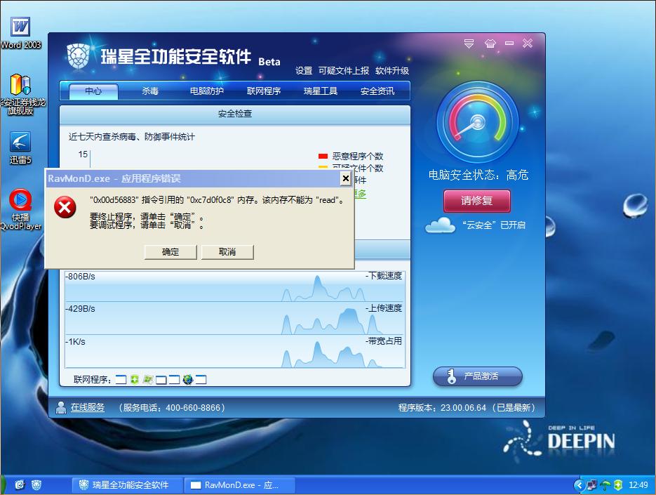 回复:瑞星全功能安全软件2011异常