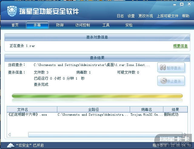 瑞星杀毒软件已可以完美修复,请将软件升级到最新版全盘杀毒。