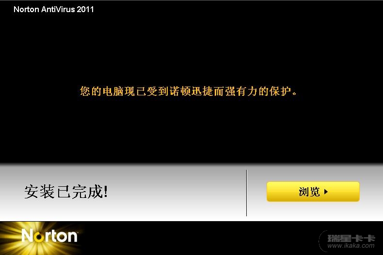 从诺顿运行 ,到安装结束  就显示了上述三个界面,多简练
