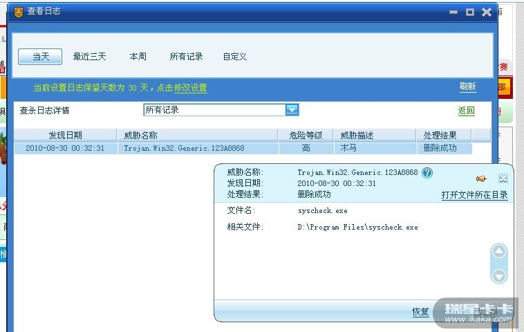 我的安全盾之反黑辅助syscheck 软件在我昨天杀毒时被删除......