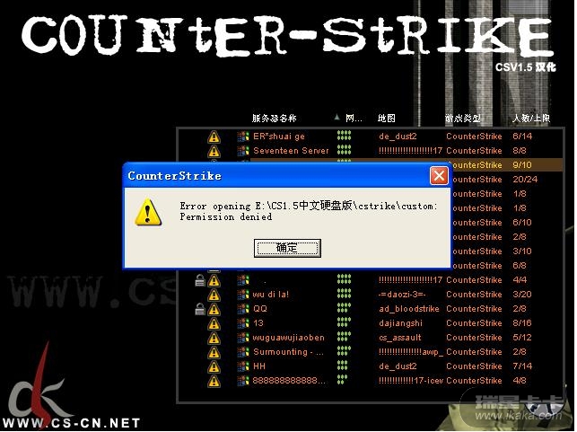 在开启瑞星文件监控的情况下,运行CS,选择进入房间之后,会被弹回如图的界面