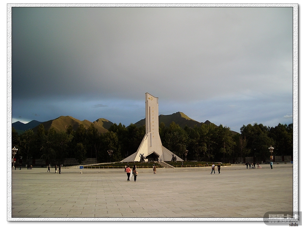 布达拉宫对面的和平解放西藏纪念碑——一对奇怪的组合
