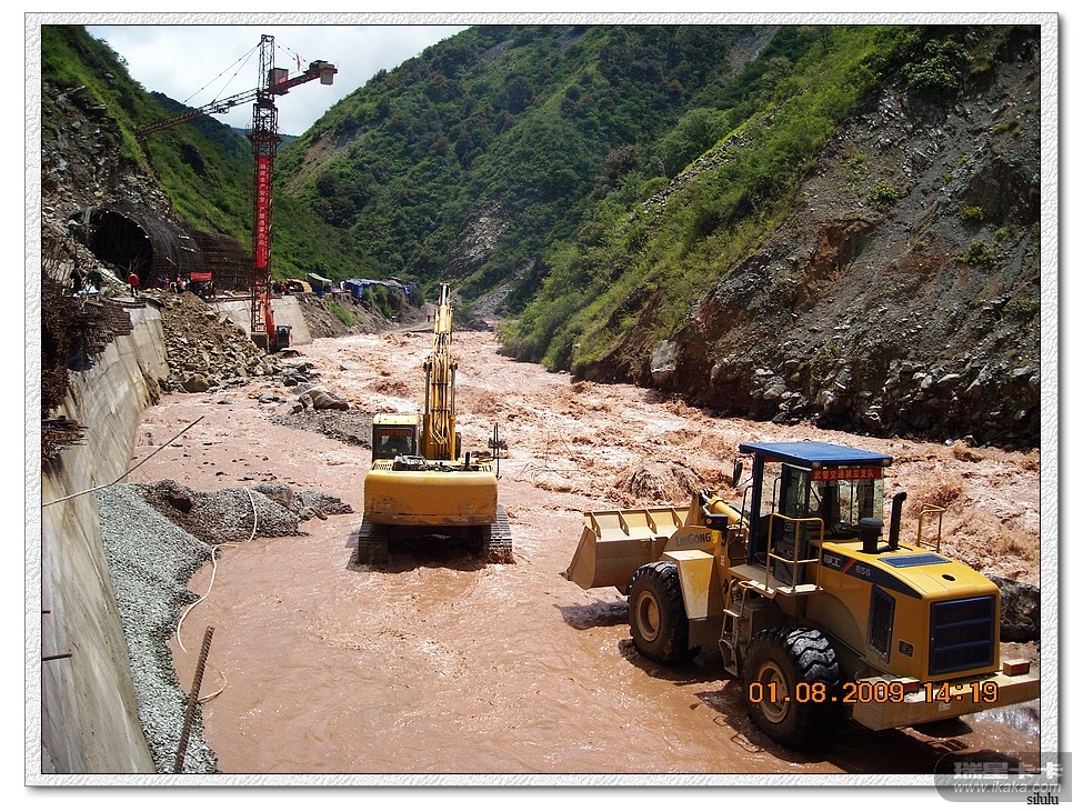 (交通部队抢修,在大自然伟力面前,人类的大型机械也如同玩具般无力)