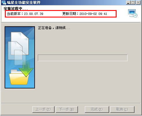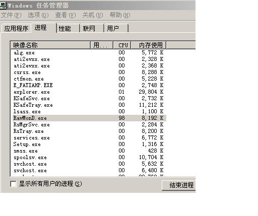 从23.00.07.31版升级到32版时就出现该问题(图1),升级界面卡在那里,10几分钟都不动,没有任何反应,修复瑞星后正常升级到32版;但从32版从级到33版时又出现该问题(图1),CPU占用也是在90%左右(图2),到39版也是这样,不能升级,