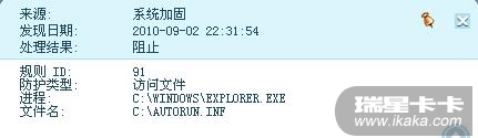 其中C D E F G H 都是这个 就是规则ID不同 这表示什么 日志里面病毒日志里面没有 只有防护日志 昨天我有发帖问explorer 变大写的问题 今天杀毒完了后 就变小写了~