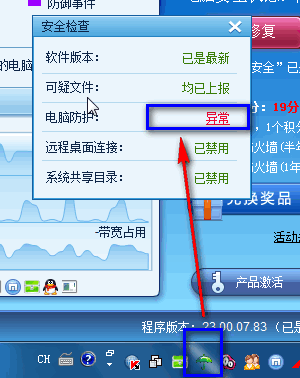 问题现象:提示监控异常,但任务栏图标仍为绿伞。
