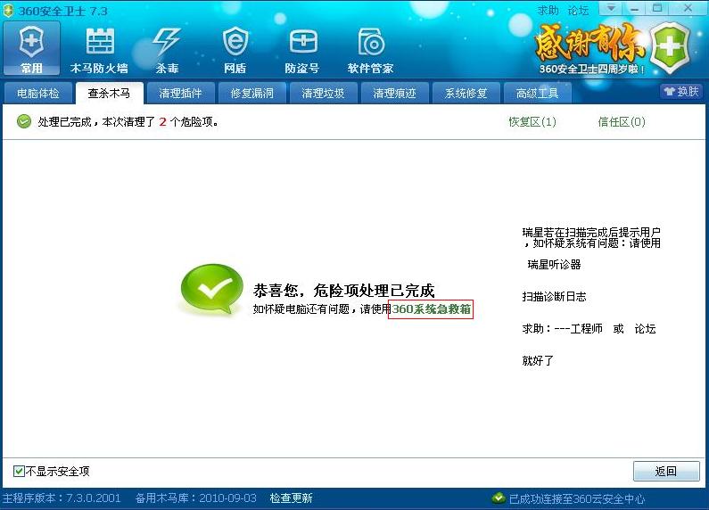 目前 360 和金山 都可以从服务器 下载并修复 系统异常的文件!!!