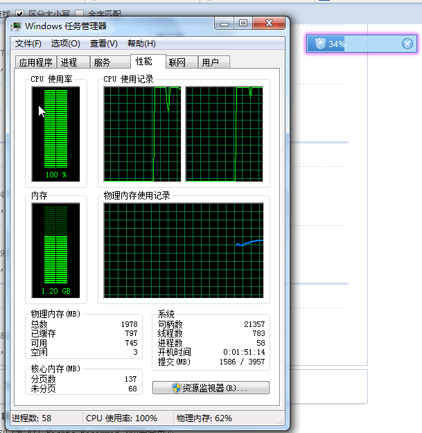 问题现象:扫描文件夹时CPU占用100%,机器响应慢。(P7350的CPU,2G内存)