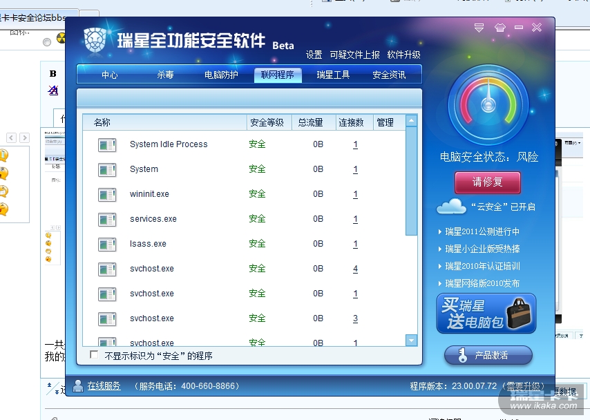 这是用瑞星2011查看的联网程序,刚开机,没什么异常!