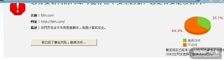 http://fzlm.com/ 这个网站为一个视频网站,提供全国和国外大多数卫星电视在线观看,我以前也看过,瑞星没有提示,而我听别人说用其它杀毒软件提示有毒.而最近瑞星也提示有毒了.而在网上搜索的情况看,大家也没有感觉中毒一样,有一次,我也继续访问了这个网业.电脑里的东西也没有感觉被盗一样