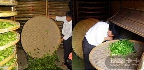 、静置 青叶经过晒青后,将青叶归筛,放入做青室静置,青叶经过晒青时,会蒸发部分水分,青叶成遢软样,在青间静置时,叶梗、叶脉的水分这时会往叶面补充,这时,叶面又会挺直起来。