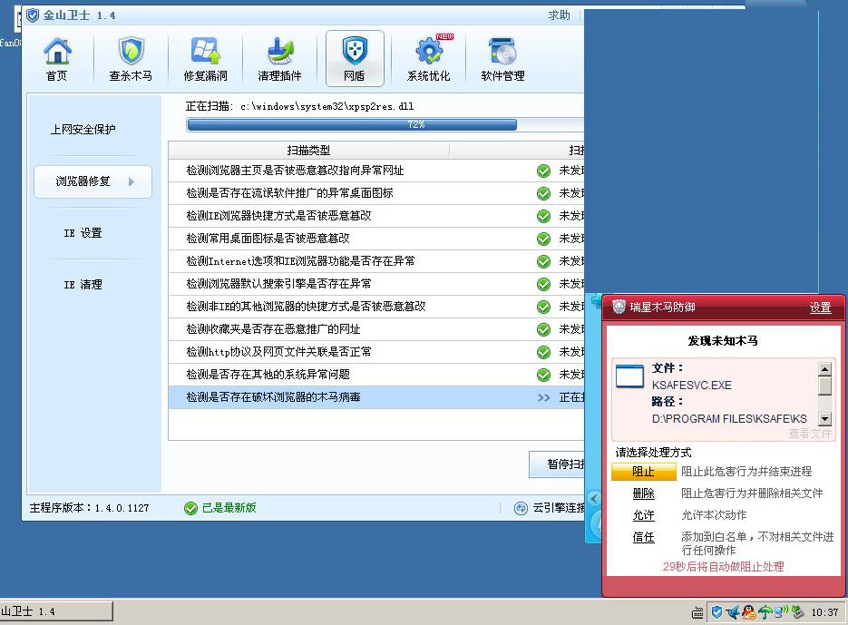 [疑似bug] 木马防御报金山卫士为未知木马,
