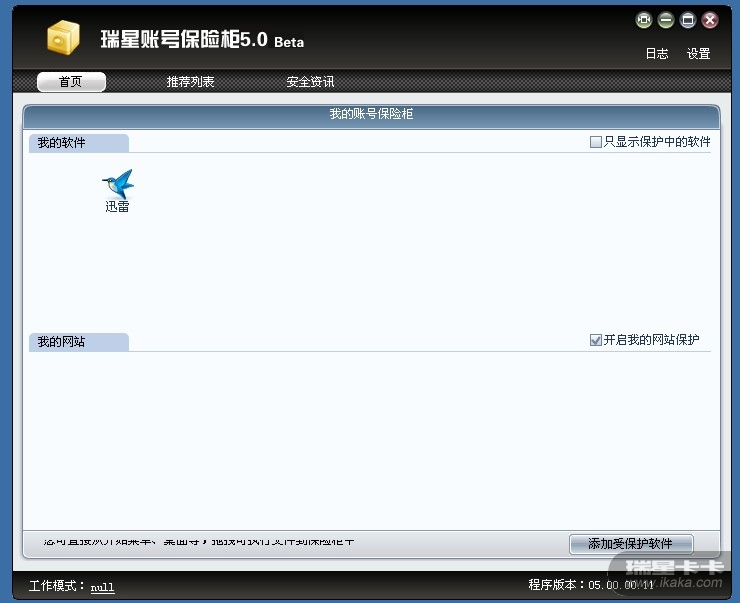 问题描述:“瑞星帐号保险柜”不知什么原因,主界面“首页”我的网站全是空白,昨天在“推荐列表”中添加的QQ,今天也不显示了,