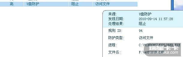 只看到U盘防护的次数在不断增加,没有插过U盘。在F盘也没找到这个文件,如图: