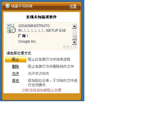 回复:卸载Google Chrome) 6.0.472.59时瑞星报未知流氓软件