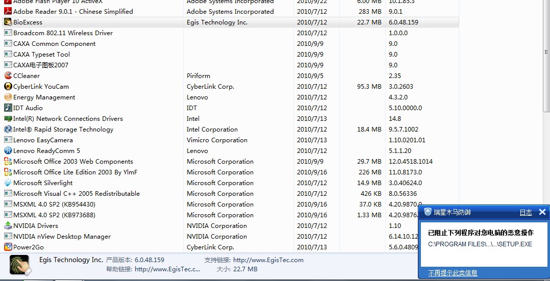 BioExcess程序跟帖打包上传,如果文件太大请上传至网盘,并提供下载地址,瑞星杀毒软件版本是多少?鼠标右键点击绿伞——查看日志——备份日志,将日志导出打包跟帖上传。