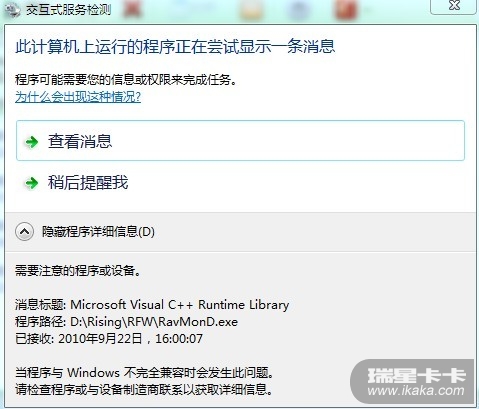 在win7 下弹出过好几次的窗口,不知道什么问题