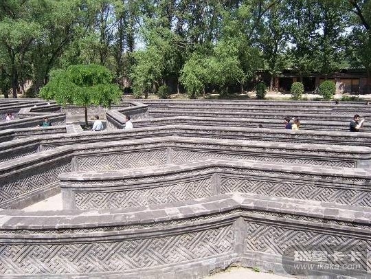 黄花阵是这里的又一景观。它是仿照欧洲的迷宫而建造的花园,外砌长方形迷阵,中心筑高台圆基八方西式亭。方阵南北长