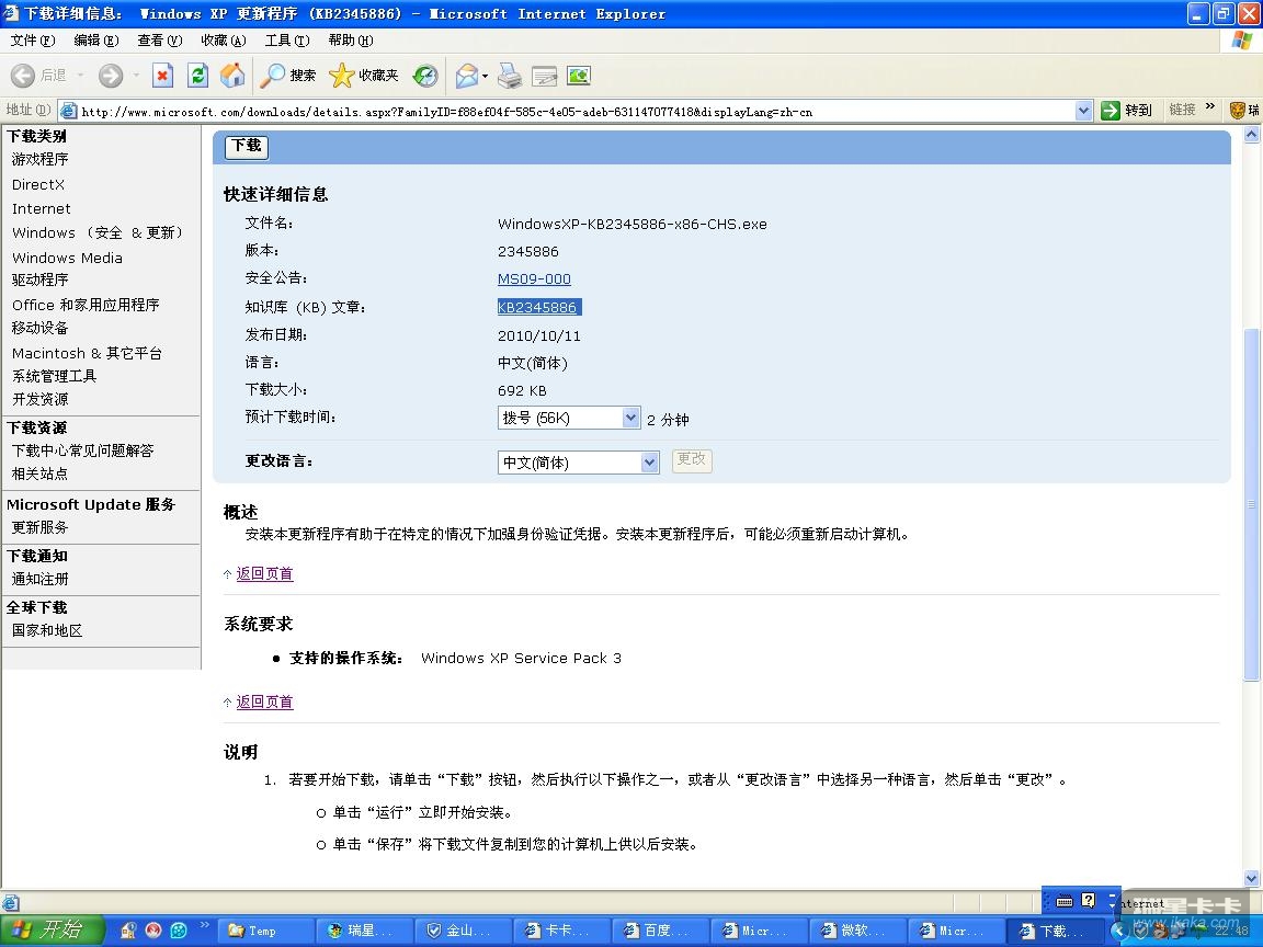 微软下载中心对该补丁的下载详细信息介绍.JPG