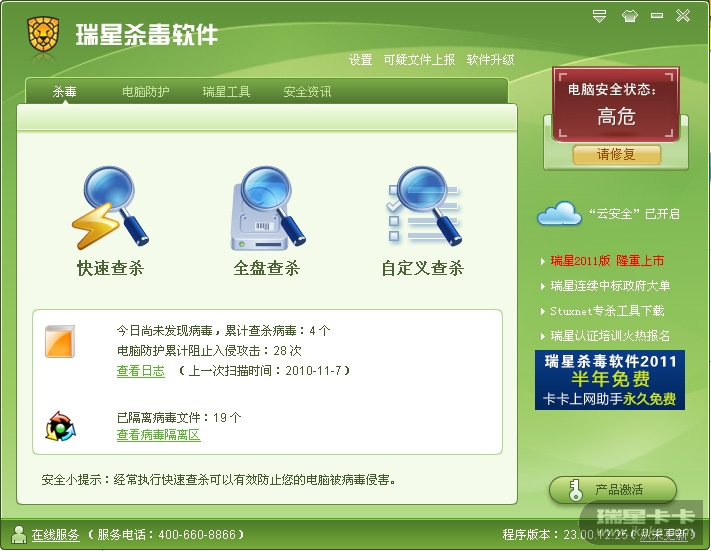 瑞星杀毒软件2011