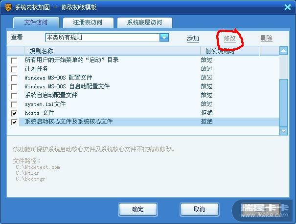 系统内核加固无法修改触发规则时的动作,修改项是灰的,鼠标右击无反映.这个难道只有瑞星全功能可以改,杀毒版的不可以改