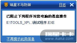 问题现象:瑞星杀毒软件(瑞星全功能安全软件)升级到2011版后,运行某软件时被瑞星木马防御拦截,见下图。