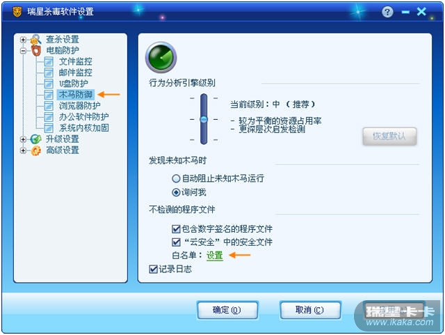 3. 对于被加入到瑞星木马行为防御白名单中的软件,您可以这样查看: