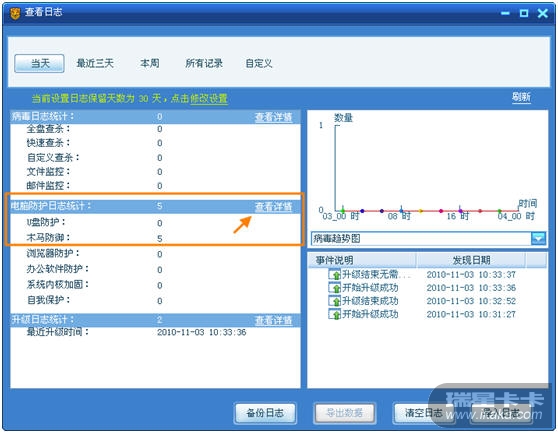 2) 点击[电脑防护日志统计]之后的[查看详情],如下图所示
