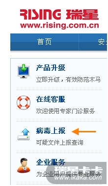 http://www.rising.com.cn),点击页面左侧的[病毒上报]
