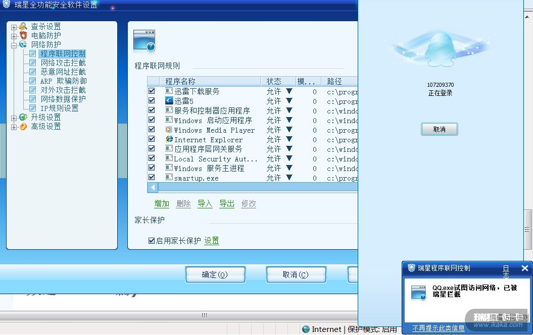 瑞星2011拦截QQ等软件
