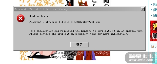请楼主提供您的瑞星软件类型及版本号,报错截图。同时运行附件中的工具,将生成的文件夹压缩后跟帖上传。