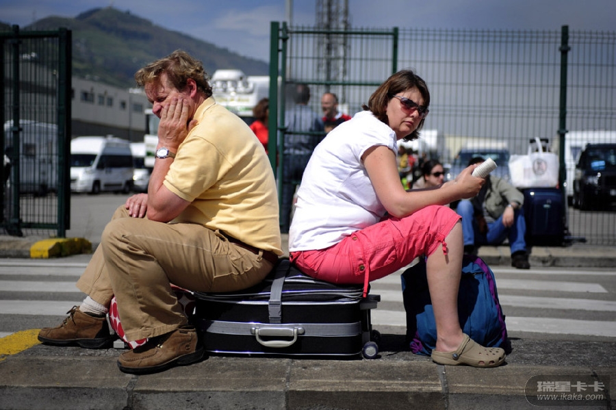 4月21日,西班牙桑图尔塞。沉寂了近200年的冰岛第五大埃亚菲亚德拉冰盖冰川火山喷发,浓烟飘入欧洲各国,西班牙多个机场受到严重影响而关闭。图为:因为机场关闭,乘客滞留无法离去。