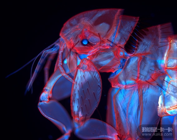 显然,跳蚤不满足于传播黑死病的“工作”,现在又侵入到微观摄影中。杜安•哈兰得在荧光灯下,放大10倍后拍摄了这只犬栉首蚤(即Ctenocephalides canis),在本次比赛中荣获第九名。而去年一幅水蚤的照片摘得桂冠。