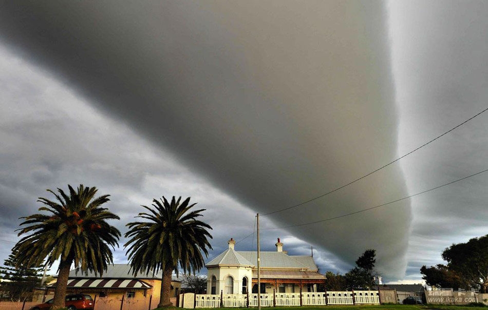 当地时间2010年9月9日,澳大利亚,婚庆摄影师Rob Sharrock幸运的拍摄到一大气象奇观,天空中巨大的滚轴云向内陆翻滚而来,场面壮观而恐怖,仿佛世界末日到来。十分滚轴云是水平的管形状云,当暴风雨逼近时,寒冷的乡下气流扩展开来就会形成滚轴云。